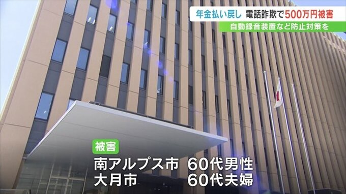 詐欺の被害に遭ったのは山梨県の南アルプス市に住む60代の男性と大月市に住む60代の夫婦です。