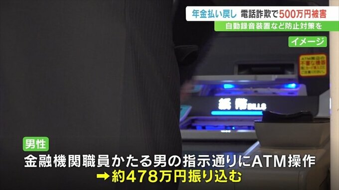 電話を信じた男性はその後、金融機関の職員を騙る男からの電話の指示通りに最寄りのATMを操作し2日間で9回にわたり、現金およそ478万円を振り込んだということです。