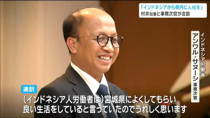 県は今年7月にインドネシアと協定を結んでいて、今後、県内で働くインドネシア人を対象とした相談窓口の設置や日本語の学習支援を進める方針です。こうした協定を踏まえアンワル事務次官は、「宮城の企業とのマッチングを進めたい」などと述べ、労働者の更なる送り出しに意欲をみせていました。