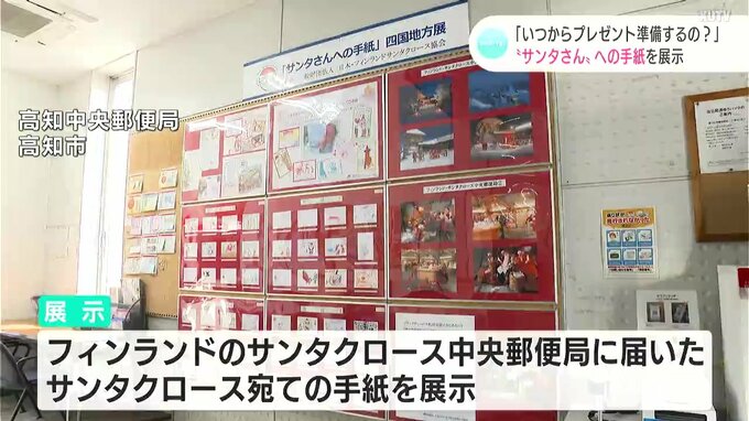 「サンタさんへの手紙」四国地方展は、11月15日まで高知市の高知中央郵便局のロビーで行われています。