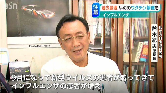 新潟県内では、例年より早くインフルエンザ感染者が増え、新潟県は先週、過去最速となる『注意報』を発表しました。新潟市内の病院では、早めのワクチン接種を呼び掛けています。