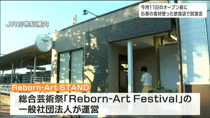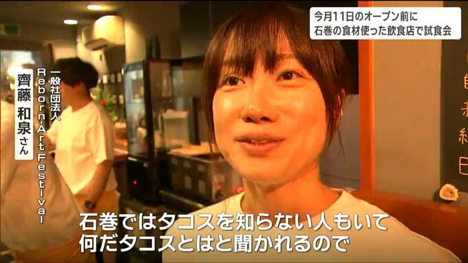 宮城県石巻産の食材をふんだんに使ったおでんやシカ肉のタコスを提供する飲食店が、11月、JR石巻駅の構内にオープンします。8日はオープンを前に関係者を招いた試食会が開かれました。