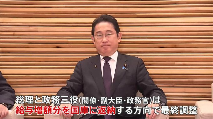 岸田総理や閣僚らの給与を引き上げる法案をめぐり、政府は、少なくとも政務三役については給与の増額分をすべて自主返納する方向で最終調整に入りました。8日、審議入りした国家公務員特別職の給与法改正案は、成…