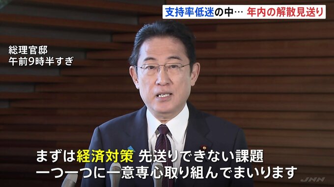 岸田総理は、年内に解散総選挙を行うことを見送る方針を固めました。当面は、経済対策により、経済を立て直すことに専念するとしています。関係者によりますと、岸田総理は周囲に「今は経済対策をやって、経済を好…