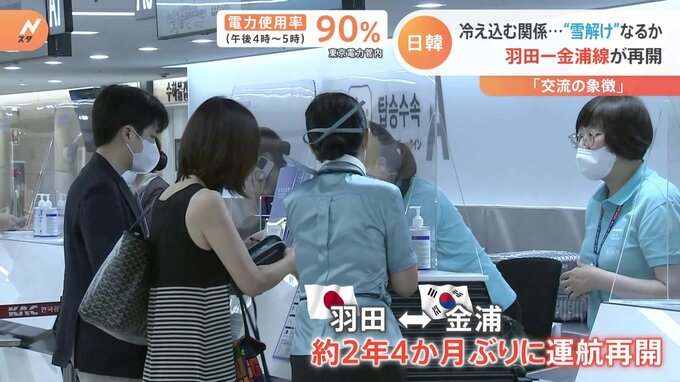 冷え込む日韓関係改善の呼び水になるでしょうか。羽田空港と韓国・ソウルの金浦空港を結ぶ航空路線の運航が、2年4か月ぶりに再開しました。記者「羽田・金浦間の路線が再開し、今、第一便の乗客が搭乗口に向かって…