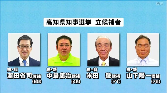 任期満了に伴う高知県知事選挙が告示され、これまでに現職と新人3人の合わせて4人が立候補しています。県知事選挙に立候補したのは、届け出順にいずれも無所属で、現職の濵田省司(はまだ・せいじ)候補(60)と、…