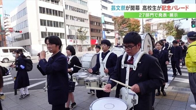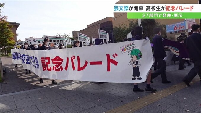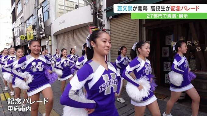 音楽や演劇など、高校生の文化活動の祭典=山梨県高校芸術文化祭の開催を記念したパレードが甲府市中心街で行われました。