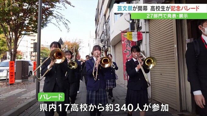高校生のパレードは、県高校芸術文化祭の開催にあわせ毎年この時期に行われています。
