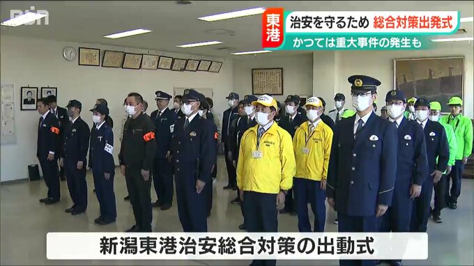 新潟東港周辺の治安を守る活動の出動式が聖籠町で行われました。商業施設での啓発やパトロールで防犯意識の向上を図ります。