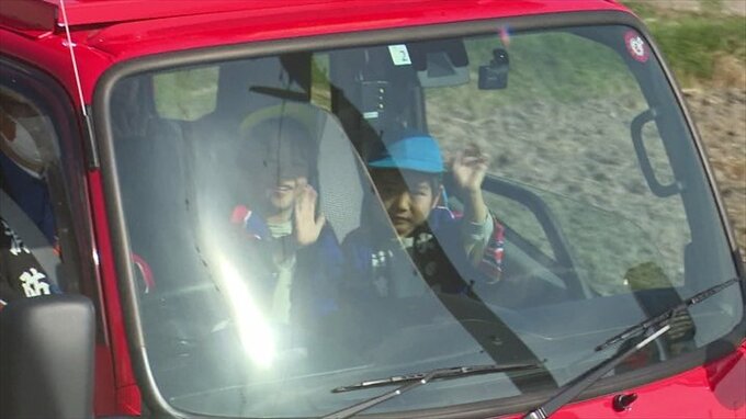 また消防団員と一緒に消火器を使った消火訓練や、消防車への乗車も体験しました。