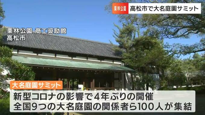 新型コロナの影響で4年ぶりの開催となった「大名庭園サミット」では、会場となった高松市の栗林公園に、全国9つの大名庭園の関係者ら100人が集まりました。