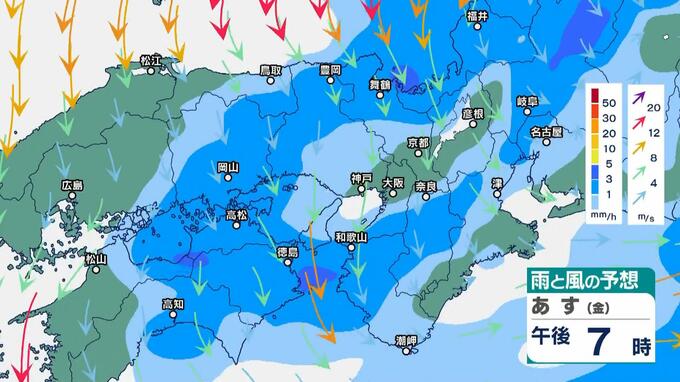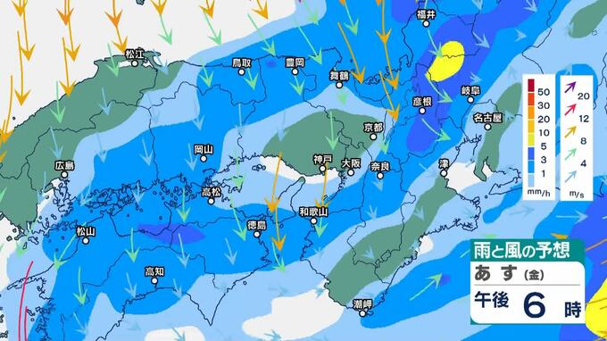 【10日は前線通過】竜巻などの激しい突風や落雷、強い雨に注意 気温ぐっと下がり大気の状態は非常に不安定な一日(1時間ごとの雨風シミュレーション) 毎日放送 2023年11月9日(木) 18:17 国内 天気 3時間ごとの雨風予想(夕方)