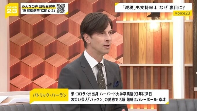 18か月連続で実質賃金が下がってる。物価が高い、燃料が高い、国際情勢も不安。不安を抱えているところで、強いリーダーじゃなくても、安定したリーダーシップを見せてくれるだけでもいいのに、それも見せてくれていないから不安が高まる一方かなと思います。