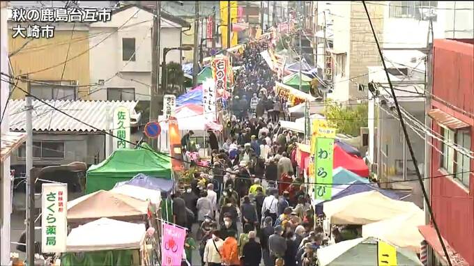 宮城県大崎市では、10日から農産物などを販売する秋の鹿島台互市が始まり大勢の買い物客で賑わっています。店の人:「2000円分、ちょっとおまけして7つやっから。おまけね」互市の会場となっているJR鹿島台駅から…