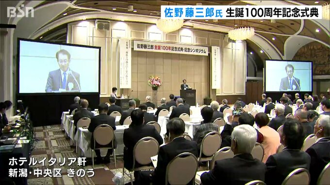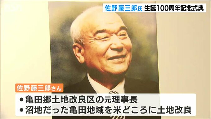新潟市 江南区の亀田地域の土地改良などに尽力した佐野藤三郎さんの生誕100周年を記念した式典が9日新潟市で開かれ、関係者がその功績を振り返りました。