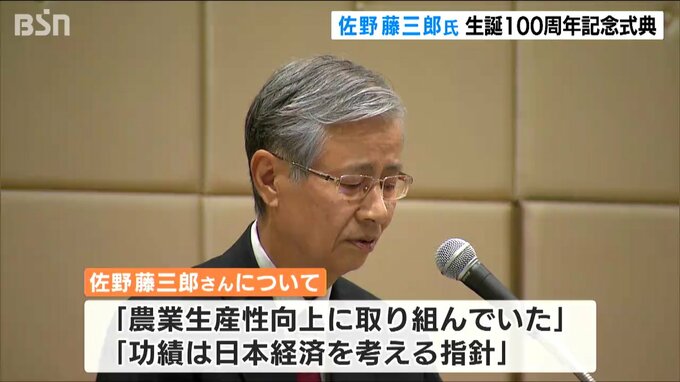 式典では元財務官僚の松元崇さんが講演し、佐野さんが現代にもつながっている農業生産性の向上に取り組んでいたことを紹介。佐野さんの功績は日本経済を考える上で指針になっているとしました。