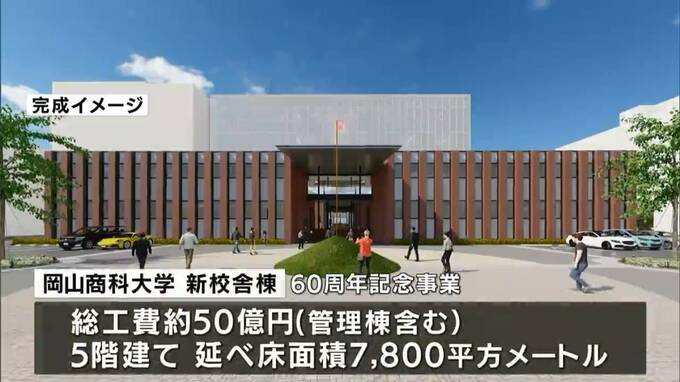 岡山市北区の「岡山商科大学」で、新たなシンボルとなる新校舎棟の建設工事が始まりました。