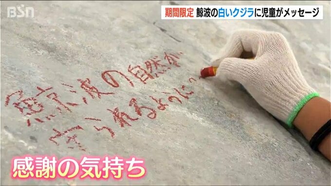 新潟県柏崎市の国道にある「クジラの地下道」の補修工事が行われているのに合わせ、普段利用する児童たちが感謝の思いを込め、クジラにメッセージを書き込みました。柏崎市立鯨波小学校の児童30人がやってきたのは…