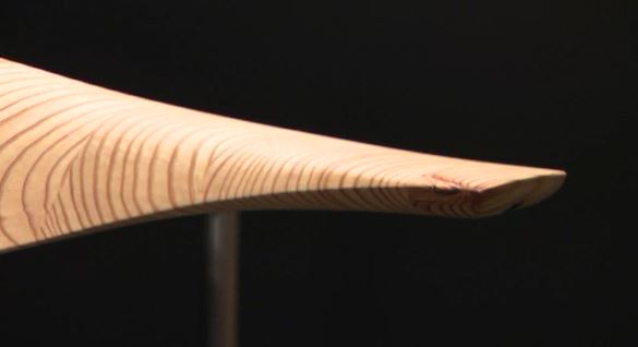 信州産のカラマツのこれまで廃棄されていた木を使って高い品質の家具を作る取り組みを取材しました。10月リニューアルオープンした松本市立博物館。こけら落としとなる特別展で展示される一脚の椅子=アームチェア…
