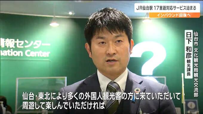 JR仙台駅2階の仙台市観光情報センターで、10日から外国人観光客向けに17の言語に対応するサービスが始まりました。