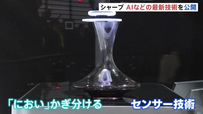 液晶事業の不振で赤字に転落したシャープ。きょう展示会を開き、強化を急いでいるのはAI=人工知能です。記者「こちらに並ぶワイン、見た目では銘柄はわかりませんが、こちらの機械にセットすると、このように銘柄…