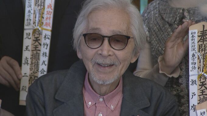 映画監督の山田洋次さん(92)が、東京の柴又帝釈天で行われた舞台「東京物語」の成功祈願に女優の水谷八重子さん、波乃久里子さんら出演者と共に出席しました。