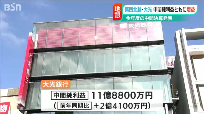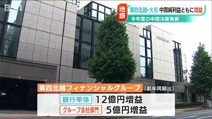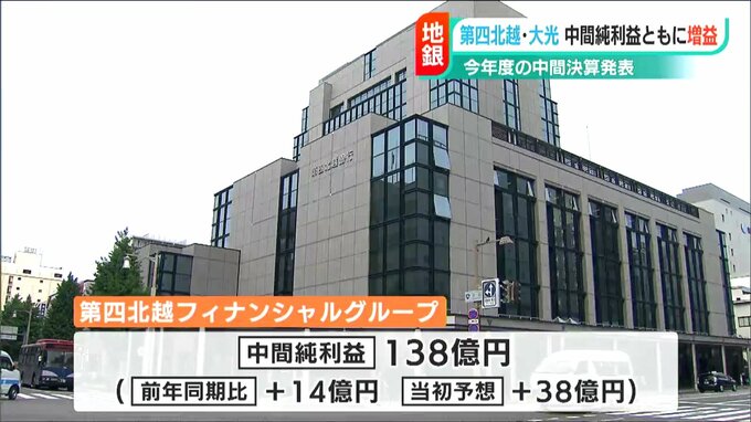 新潟県内の2つの地銀が今年度の中間決算を発表しました。第四北越フィナンシャルグループと大光銀行はともに純利益で増益となっています。
