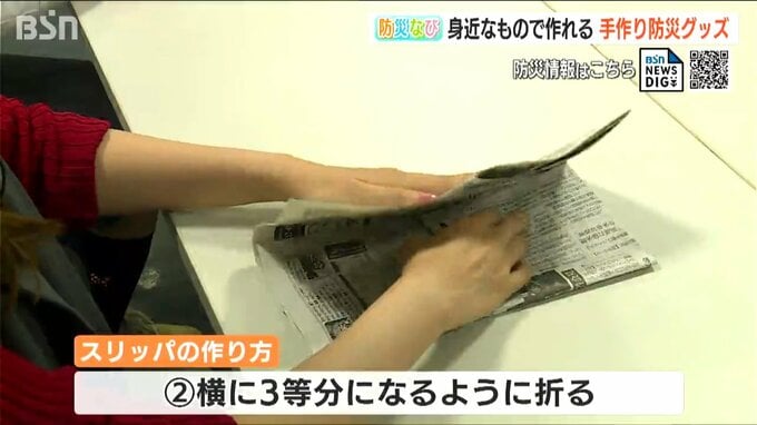 「まず最初に真ん中まで折っていきます。4分の3に折って…横に3等分に折ります」