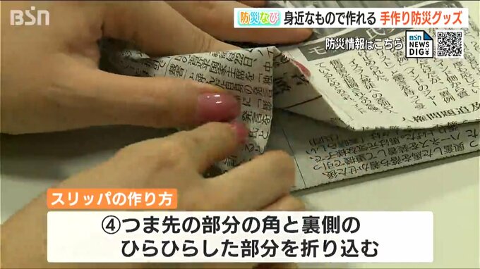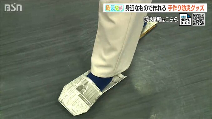 割れた食器やガラスの破片があり、こんなところを歩いたらと思うと恐ろしくなります。このような時に簡単に作れるスリッパです。
