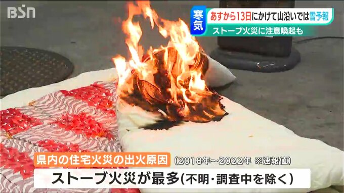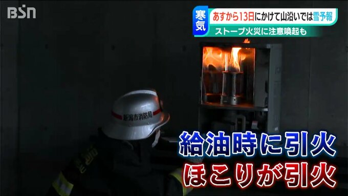 新潟県内は11日から13日にかけて強い寒気が流れ込み、山沿いでは雪が降るところがありそうです。こうした気温が下がる中で使うストーブですが、誤った使い方をすると火災に繋がりかねないと消防が注意を呼びかけています。