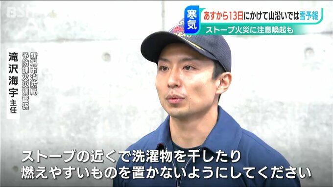 【新潟市消防局 予防課火災調査係 滝沢海宇 主任】「ストーブの近くで洗濯物を干したり、燃えやすいものを置かないようにしてください。また就寝の際や部屋を出る際には、こまめにスイッチを切るようにお願いしたいと思います」
