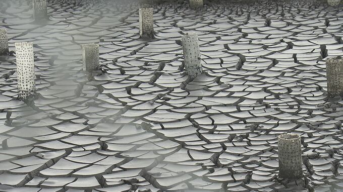 天日でじっくりとカラカラに乾燥させることで、泥は、微細な穴の空いた軽石のような状態となり、当初は水槽の水質改善材として注目されました。