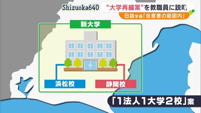 静岡大学と浜松医科大学の統合・再編をめぐり、静岡大学の日詰一幸学長などは11月10日、「1大学2校」案を正式な再編案とするため、教職員向けの説明会を開いたことが関係者への取材で分かりました。<坪内明美記者…
