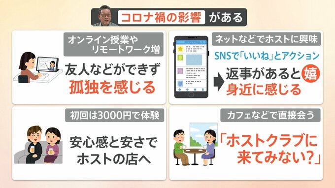 「最初は安いんだよ」「初回は3000円で体験できるんだよ」ということで、安心感と安さでホストの店に行く。こういったケースがあるということです。