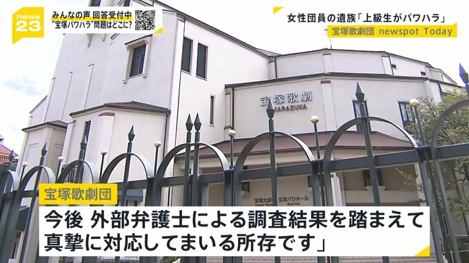 宝塚歌劇団は会見を受けて「大変重く受け止めており、今後、外部弁護士による調査結果を踏まえて、真摯に対応してまいる所存です」としています。