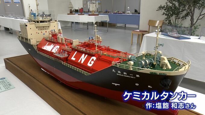 岡山県内の84歳の男性が製作した「ケミカルタンカー」は、100分の1の縮尺で、パイプの繋がりを再現するのに苦労したといい、約1年かけて製作された作品です。