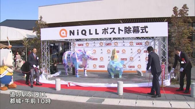 都城市の道の駅、「NiQLL」がグランドオープンし、新たに設置された郵便ポストがお目見えしました。11日は、グランドオープンを記念してセレモニーが開かれ、牛や豚の形をした郵便ポストがお披露目されました。…