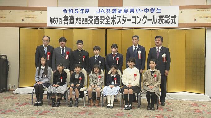 小中学生を対象にした書道と「交通安全ポスター」のコンクールの表彰式が11日、福島市で行われました。このコンクールは、子どもたちに交通安全への関心をもってもらおうとJA共済連福島などが毎年、開催しているも…