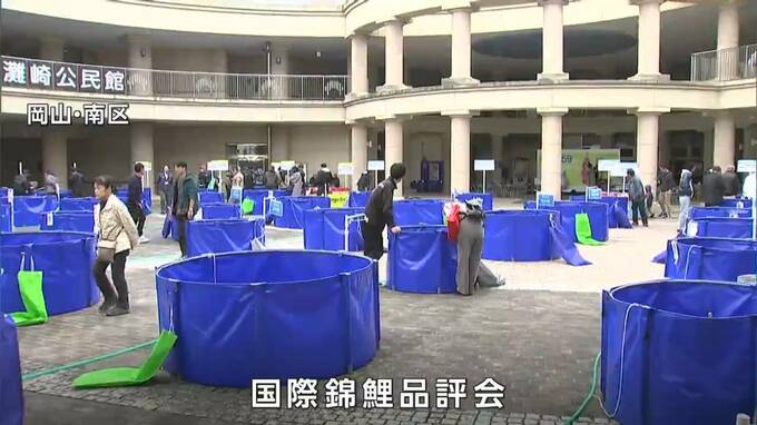 世界中の愛好家が育てた錦鯉の品評会が岡山市南区で開かれました。