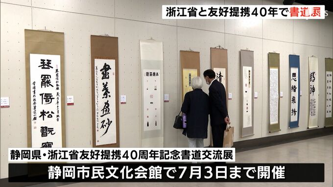 静岡県と中国の浙江省が友好提携を結んでから2022年で40年です。両者の友好をさらに促進するための書道展が静岡市で始まりました。静岡市葵区の静岡市民文化会館で始まったイベントでは、中国・浙江省と静岡県内の…