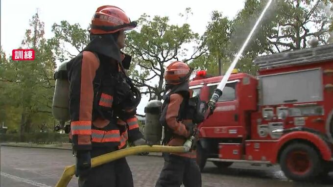 倉敷市のマスカットスタジアムで、消防と球場の職員による合同消防訓練が、きょう(13日)行われました。