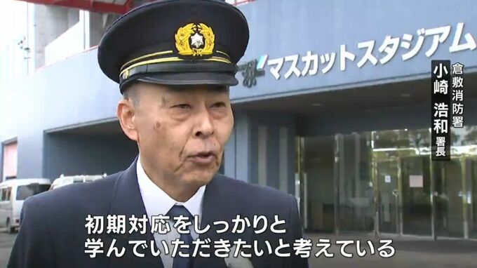 球場を管理する倉敷スポーツ公園は、「火災が起きた時、どう行動するかをイメージして日々の業務に取り組みたい」としています。