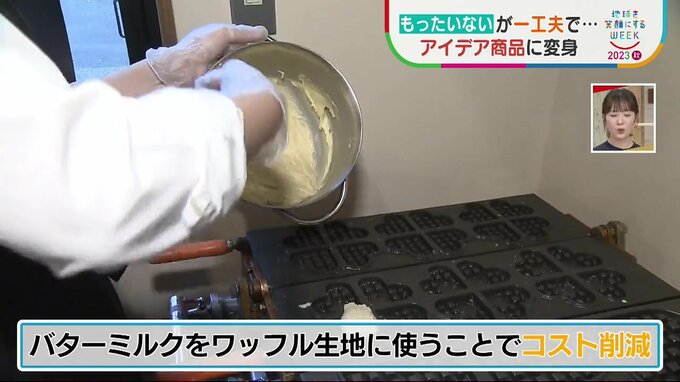こちらでは、バターミルクをワッフル生地に使うことで、コスト削減につながっているそう。そしてワッフルは甘さ控えめなあっさりとした仕上がりに。