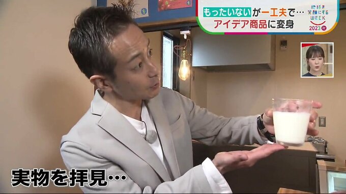 リポーター「え!おいしいですね!!確かに普通の牛乳より少し薄いのかな?味はほんのり甘くて、牛乳と大差ない。これ廃棄されていたんですか?もったいない」