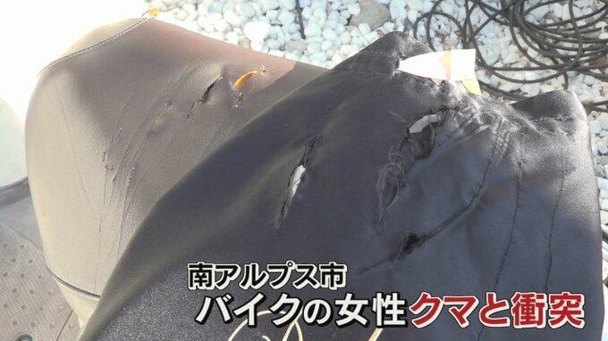南アルプス市ではバイクの女性がクマと衝突。