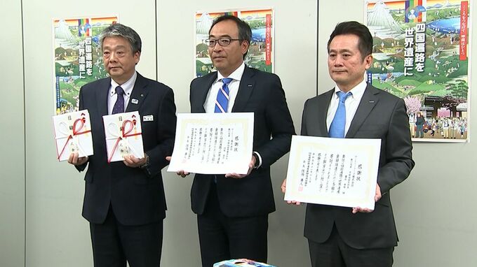 四国遍路の世界遺産登録を応援しようと、サントリーとサントリーフーズが飲料の売り上げの一部を寄付しました。香川県庁で行われた贈呈式では、サントリーの村尾中国・四国営業本部長らが香川県の象山文化芸術局長…