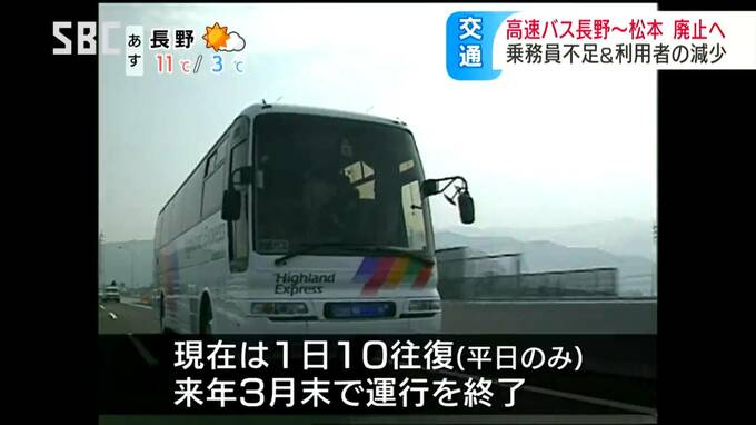 長野市と松本市を結ぶ高速バスが、慢性的な乗務員不足などを理由に2024年3月末で廃止されることになりました。