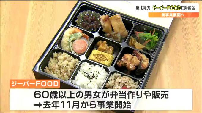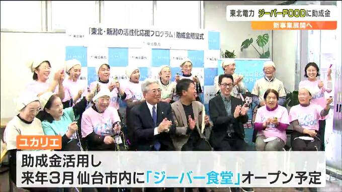 地域のシニア世代の人たちが手作りした弁当を販売する事業、「ジーバーFOOD(フード)」について東北電力は、地域の課題解決などに取り組んでいるとして助成金を贈呈しました。ジーバーFOOD(フード)を運営するユカリエでは、この助成金を利用し、来年3月、仙台市内に「ジーバー食堂」をオープンさせる予定です。