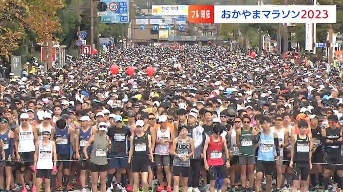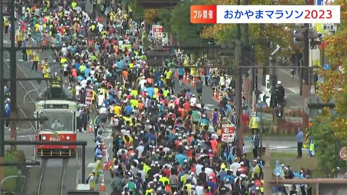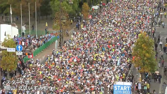 午前8時45分、号砲とともに1万6千人を超えるランナーたちが岡山市街地へと飛び出していきました。