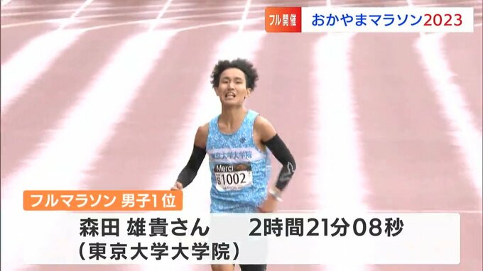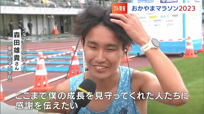 フルマラソン、トップで帰ってきたのは岡山県出身で東京大学大学院の森田雄貴さんでした。